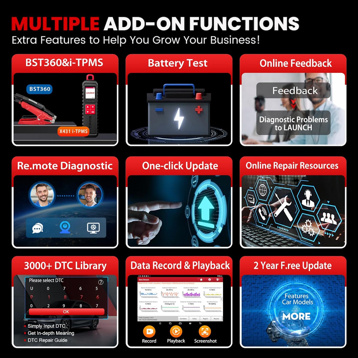 - Control bidireccional, más de 3000 pruebas activas: el escáner OBD2 LAUNCH CRP919EBT cuenta con control bidireccional, la capacidad más demandada entre los mecánicos. Cuando los faros o las ventanas funcionan mal, las reparaciones pueden ser costosas. Con CRP919EBT, ejecute comandos ECU y evalúe el estado de reparación a través de sistemas que incluyen ABS, ventanas, válvulas, limpiaparabrisas y faros, lo que agiliza el diagnóstico mientras reduce los gastos de reparación.